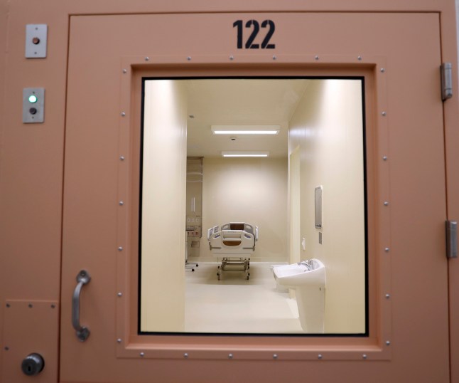 A door window peers into the medical room at the Utah Correctional Facility (Picture: AP)