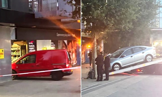 The first incident happened around 3am on August 22,with the car going through the doors of the shop before being promptly abandoned.