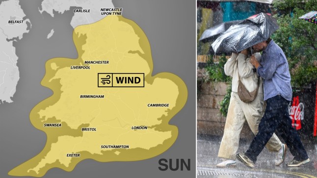A yellow weather warning for wind has been issued for most of England and all of Wales from Sunday to Monday evening (Picture: Metro)