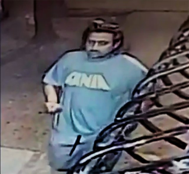 He was pictured by the police department wearing a light blue T-shirt and walking on a street.