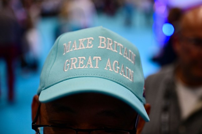 It wasn’t hard to find Reform fans wandering around with ‘Make Britain Great Again’ baseball caps,an adaptation of the Maga hat made famous by the President – in the party’s signature teal,rather than Republican red.