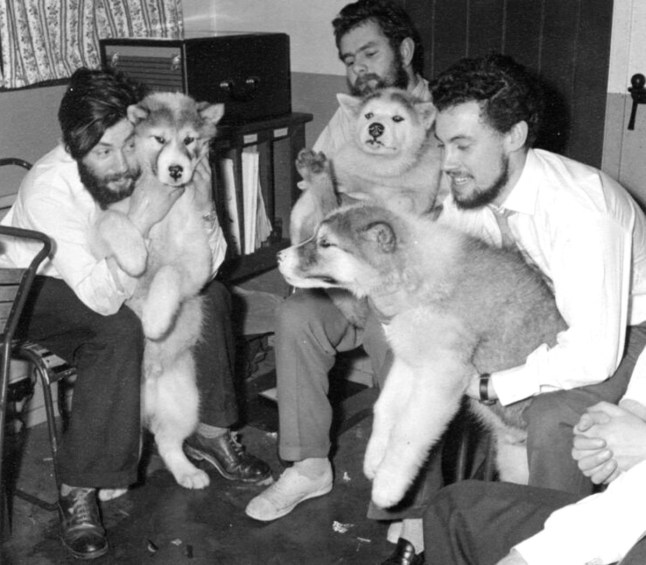 Bell (left) with his research colleagues and the dogs that helped them work in Antarctica in 1959 (Picture: British Antarctic Survey)