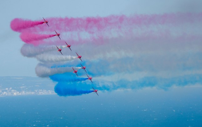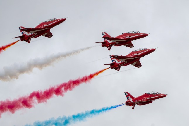 The Red Arrows impressed at the Royal International Air Tattoo in Fairford in July,the world’s largest military air show (Picture: Getty Images)