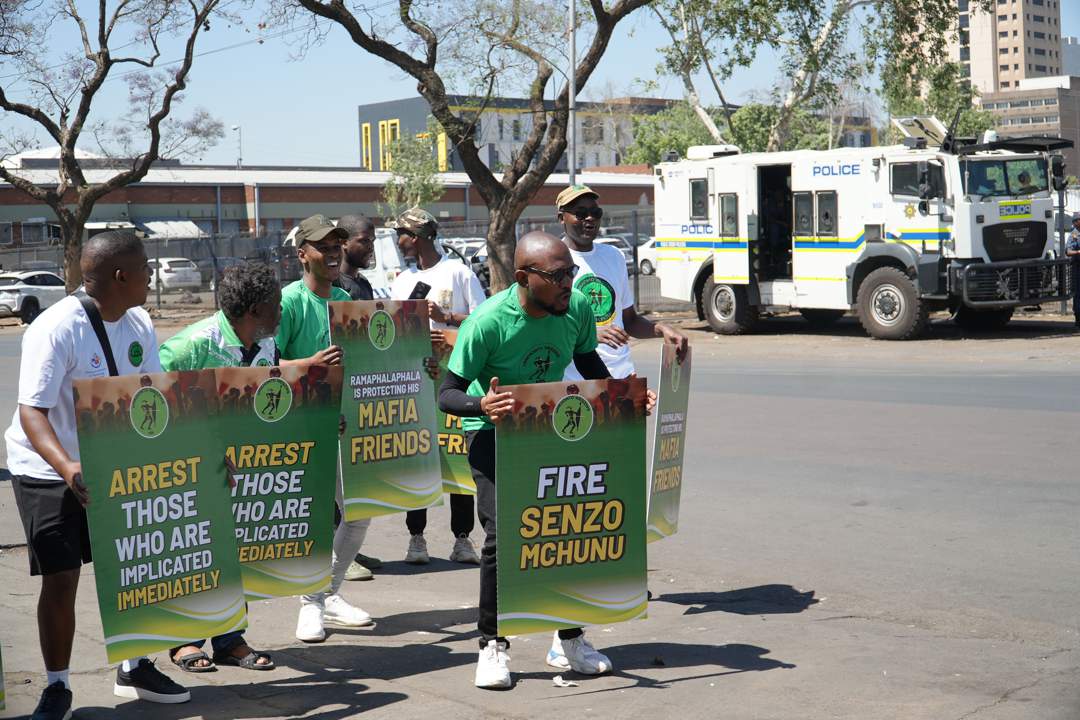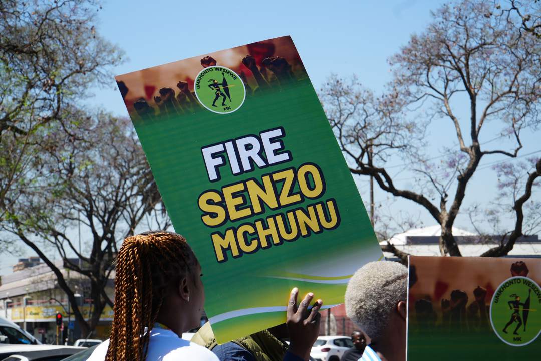 A small group of MK Party members staged a protest outside the Brigitte Mabandla Judicial College.