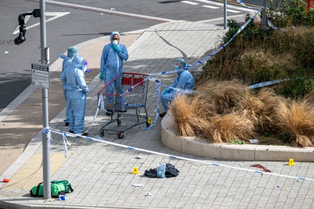 Forensics officers examining a bottle of alcohol next to an evidence marker at a crime scene near Wembley Stadium (Picture: Stephen Chung/LNP)‘There will be an increased police presence in the local area. We’d urge anyone who may know something about this incident,however small it may seem,to pleaseUnited News - unews.co.za