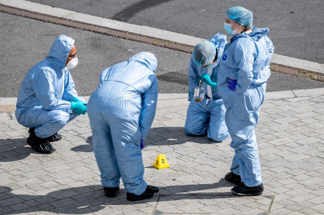 Forensics officers at work at a crime scene near Wembley Stadium following a reported shooting in Atlantic Crescent (Picture: Stephen Chung/LNP)