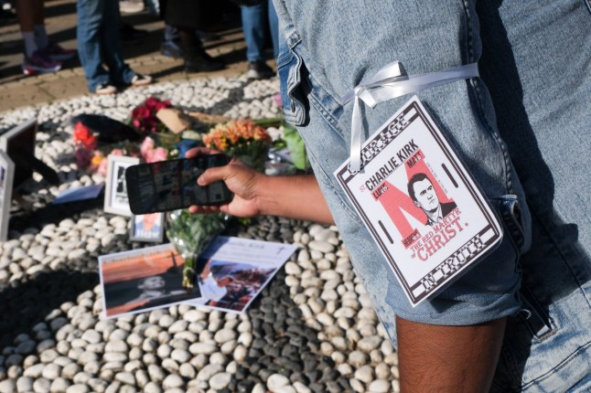 Others held signs proclaiming ‘We are all Charlie Kirk’.