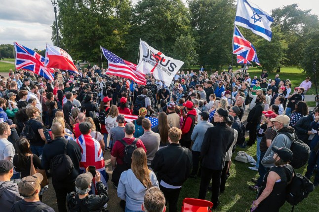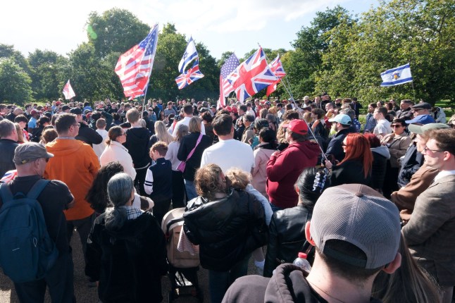 Crowds gather to remember Charlie Kirk near Speaker’s Corner in Hyde Park (Picture: Shutterstock)