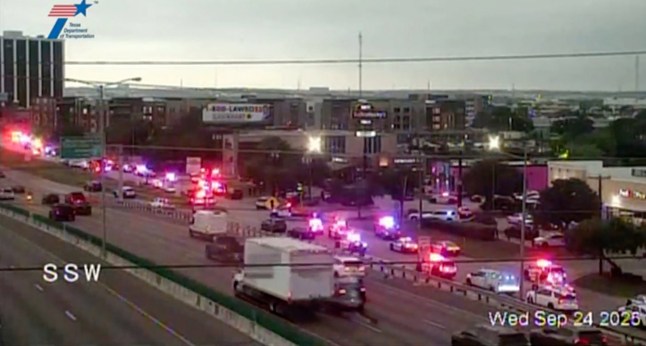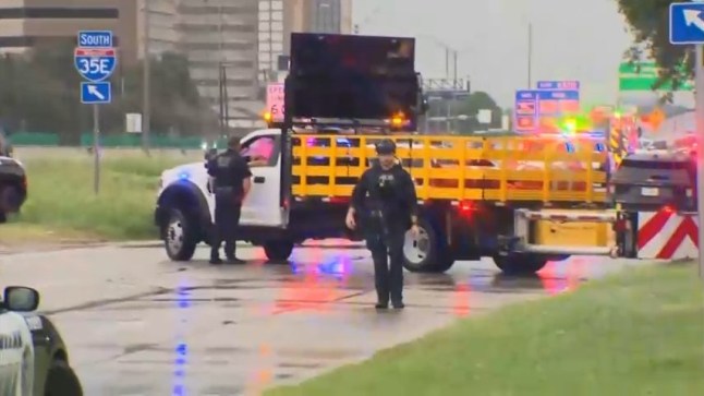 This traffic camera image shows heavy police presence off I-35E close to a U.S. Immigration and Customs Enforcement office,in northwest Dallas (Picture: AP)