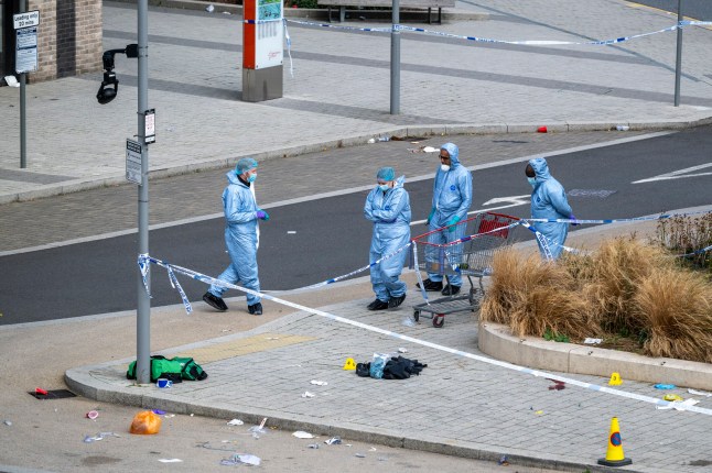 Forensics officers at work at a crime scene near Wembley Stadium following a reported shooting in Atlantic Crescent over the weekend (Picture: Stephen Chung/LNP)