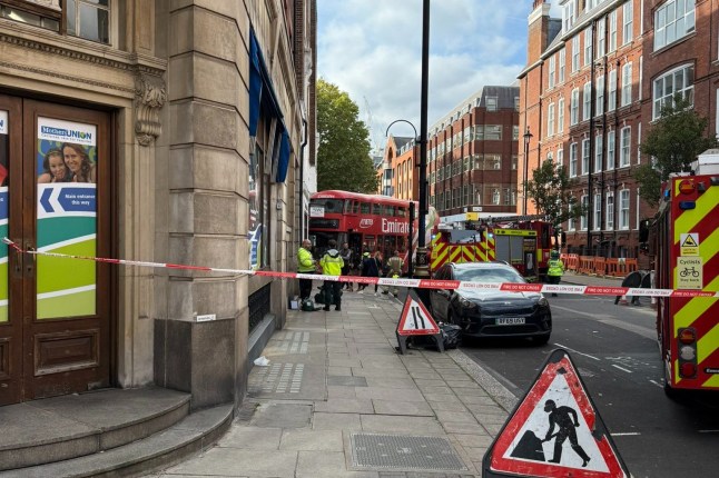 The double-decker mounted the pavement and smashed into the shopping parade in Westminster at 1.40pm on Tuesday.