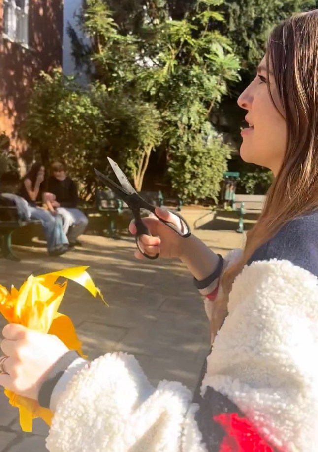 Nadia Yahlom was caught on camera cutting down yellow ribbons representing hostages taken by Hamas from Israel on October 7.