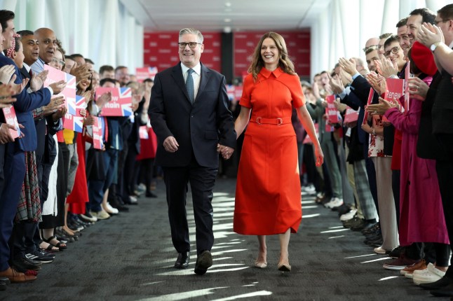 Prime Minister Keir Starmer and his wife Victoria looking chuffed with his speech (Picture: Reuters)