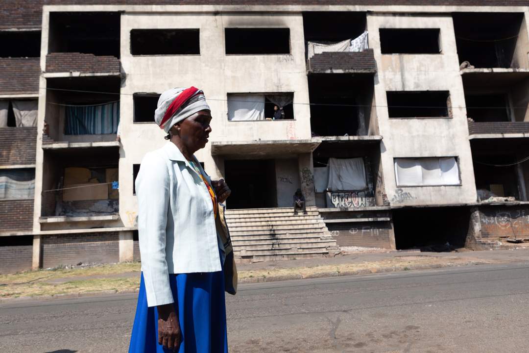 Outside,resident Nita Ntuli tries to help those living in squalor in the building: “I take food as often as I can. There are small children there. Sometimes I can’t afford to,so I give them love instead.”