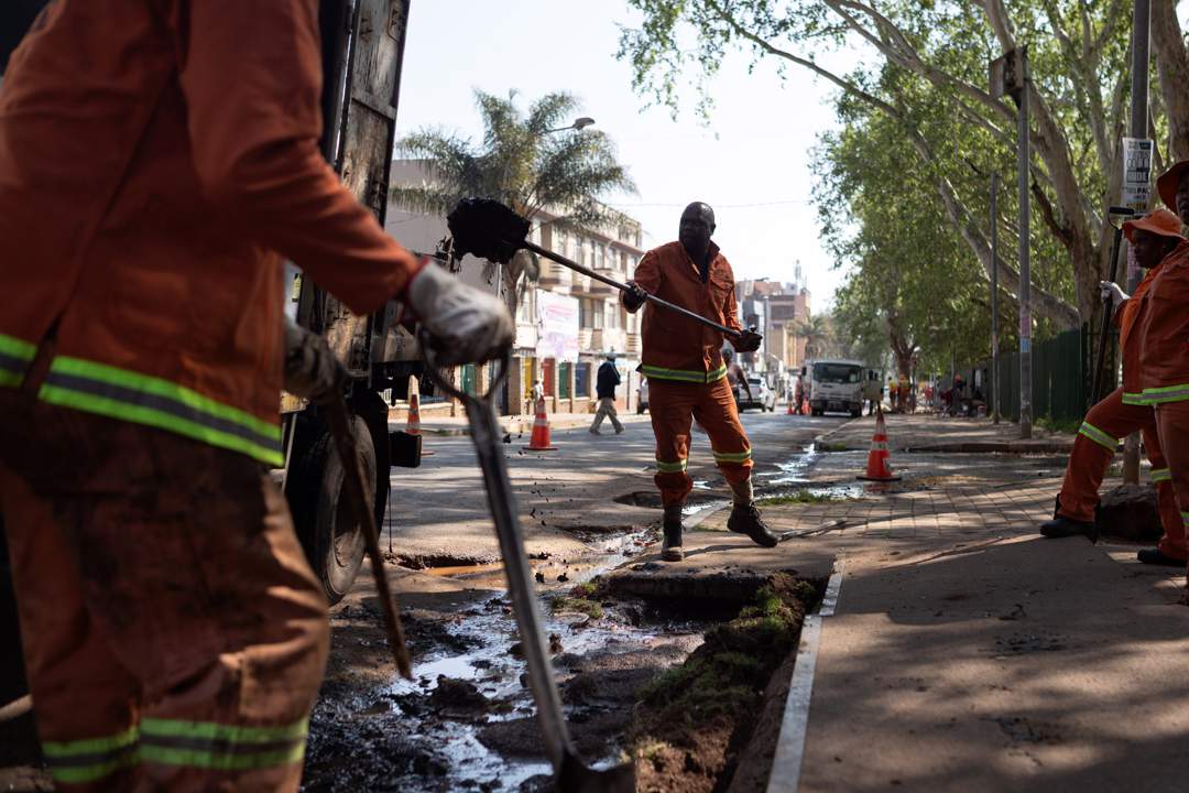 Municipal workers clear drains during clean-up operations in Yeoville,Johannesburg.