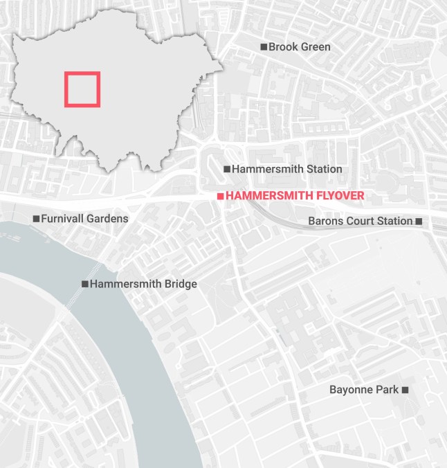 A map shows where the Hammersmith flyover is in west London (Picture: Metro)