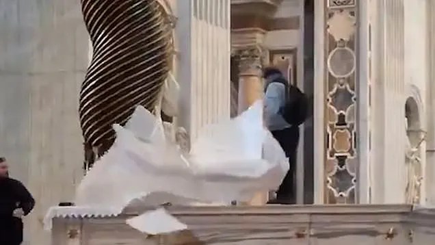 He was arrested and Cardinal Mauro Gambetti,the Basilica’s archpriest,condemned the ‘inappropriate,truly regrettable gesture’.