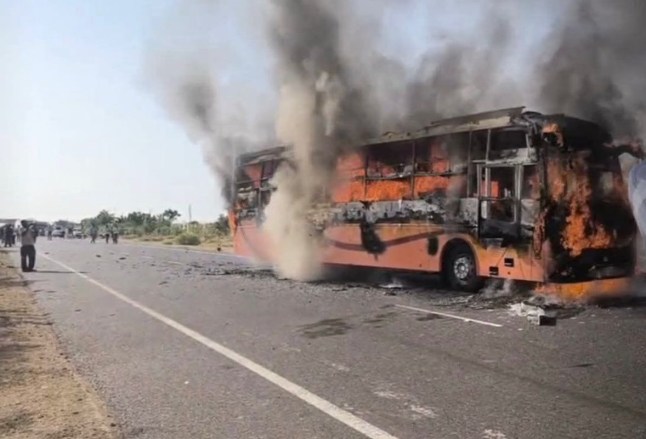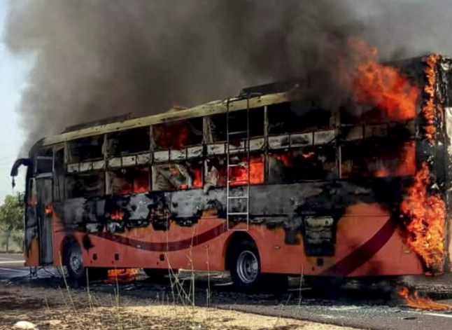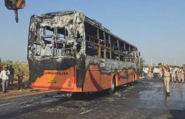 Dozens of people burned alive when the bus suddenly caught fire in northwestern India