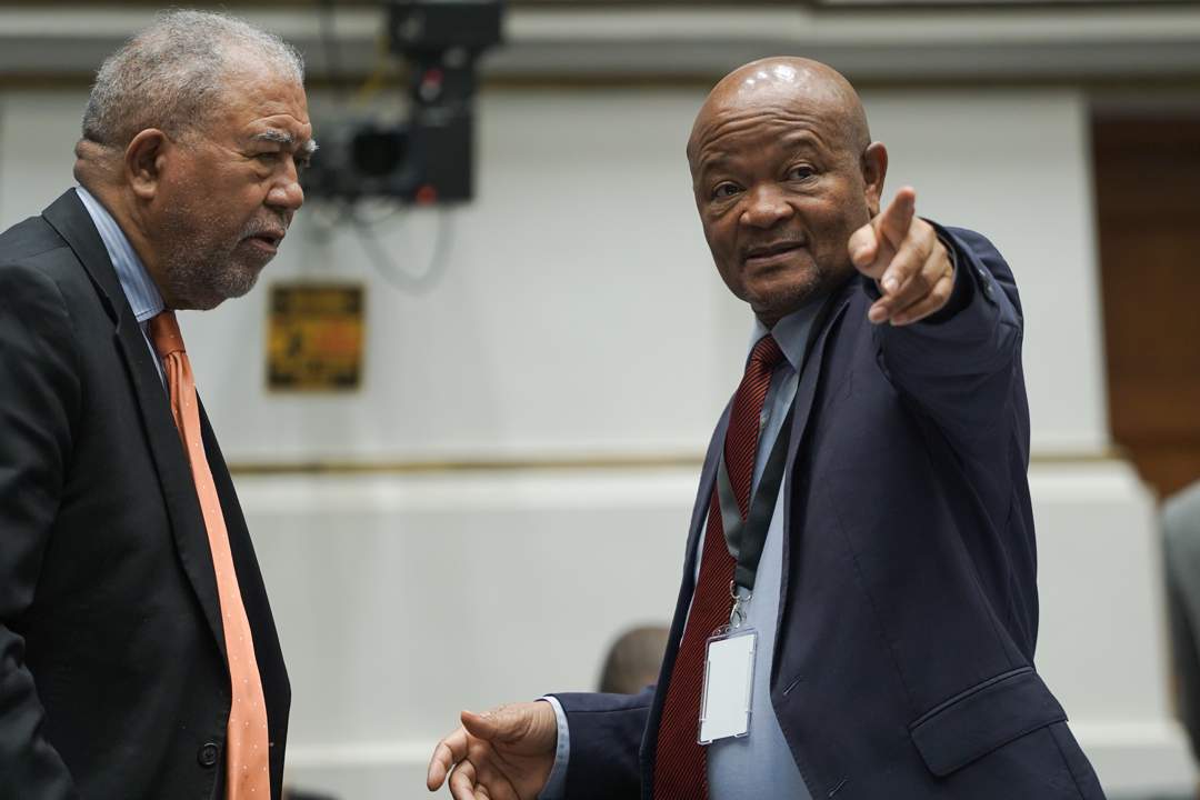 Suspended Police Minister Senzo Mchunu and the ad hoc committee’s evidence leader,Norman Arendse.