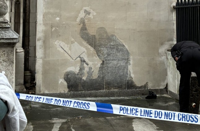 The new Banksy at the Royal Courts of Justice (Picture: Dan Kitwood/Getty Images)