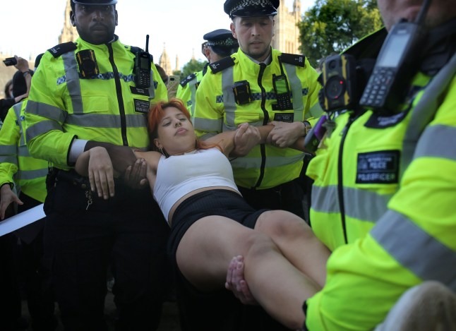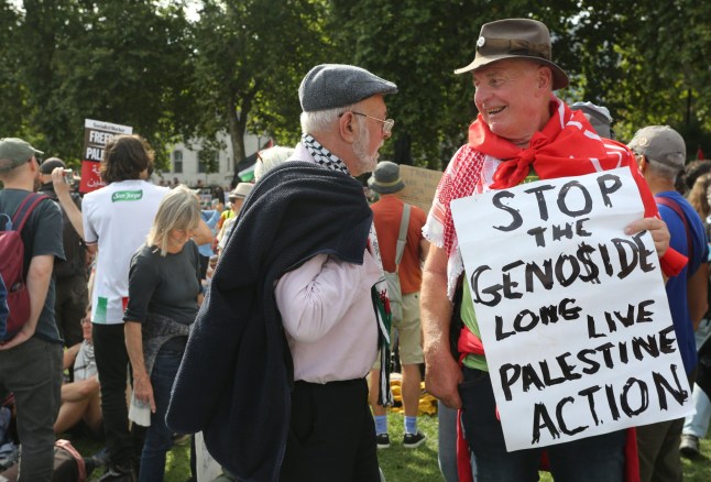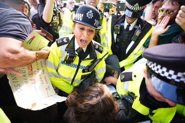 Hundreds of supporters of the group were detained in Parliament Square on Saturday (Picture: Martin Pope/Getty Images)‘Israel is still committing a genocide. No one was doing anything about it. Our government is continuing to arm Israel.‘We felt that we had to do something more.’Israel has always denied causing a genocide in Gaza and blames Hamas for aid not being distributed to Gaza’s population.This has been disputed by the world’s leading association of genocide scholars who declared last week that it is committing genocide in Gaza.International outrage over its actions in the enclave has led the UK to suspend 30 arms export licences to Israel although the countries retain a ‘defence partnership’.Sir Keir Starmer has also said the UK will recognise Palestine unless certain criteria are met. This includes a ceasefire in the current conflict which was triggered after Hamas attacked Israel in October 2023.None of this has abated outrage among many protestors including Carolyn over the continuing dire situation in Gaza.She was among hundreds of people who gathered in central London before writing ‘I oppose genocide,I support Palestine Action’ on placards at 1pm.