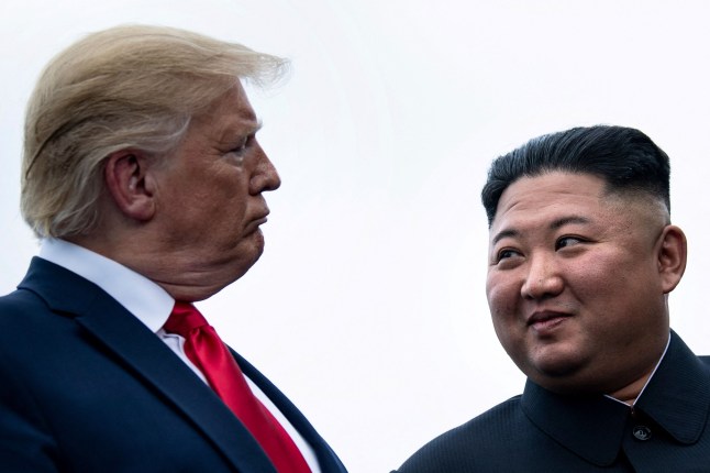 Kim Jong Un and Donald Trump preparing to shake hands (Picture: AP Photo/Susan Walsh)