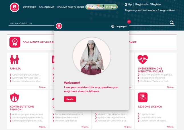 The text-based chatbot answers questions and helps people and businesses obtain state documents on e-Albania.