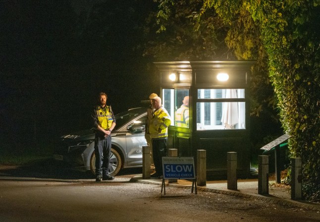 The gates to the Royal Lodge this evening (Picture: w8media)