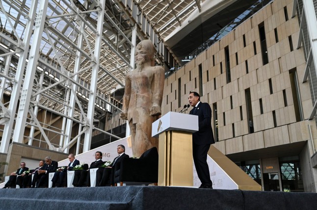 Egyptian Prime Minister Mostafa Madbouly speaks ahead of the opening of the Grand Egyptian Museum (Picture: EPA)