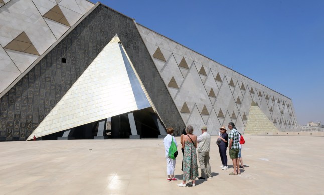 Tourists visit the Grand Egyptian Museum near the pyramids (Picture: EPA)