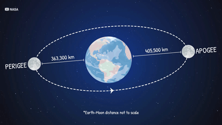 ‘The reason that this happens is because the Moon’s orbit around Earth is not a perfect circle in shape,it is elliptical (like a squashed circle or oval).
