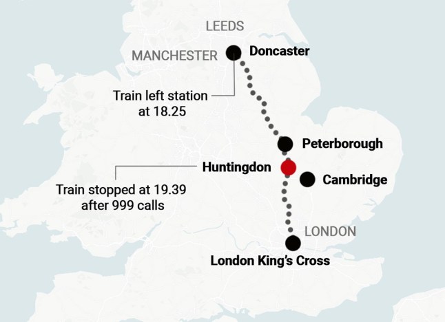 The train came to a stop in Huntingdon (Picture: Metro)
