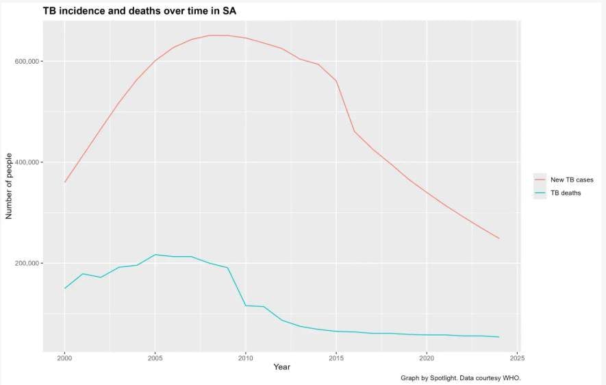 TB deaths in South Africa declined to 54 000 in 2024,driven by the HIV treatment programme’s expansion. TB incidence in South Africa fell to 249 000 in 2024,compared to more than 600 000 two decades ago. Underdiagnosis remains a challenge,as 65 000 TB cases went undetected in South Africa in 2024.Around 54 000 people died of TB in South Africa in 2024,according to figures released on Wednesday alongside the World Health Organization’s (WHO) latest World TB Report. This continues a slow downward trend in TB deaths in recent years.
