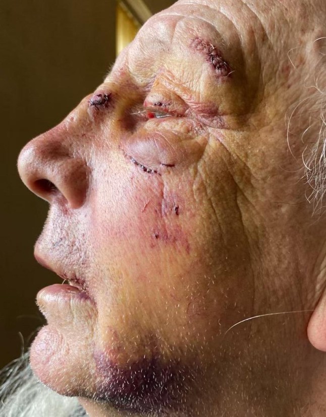 He was left bruised and bloodied by Morris (Picture: Wales News Service)‘When the victim asked what he meant,Morris told him that he would make him smile now,before launching a vicious attack. Morris punched his victim to the floor,pinned him down and rained down punches,targeting his head and face. He then kicked him repeatedly while he was still on the floor.’Lyndon,covered in blood,struggled to his feet and managed to get to a family member’s house and call the police.The pensioner recalled: ‘I turned around and the next thing I knew I was waking up on the floor with him on top of me,pounding my face.‘When he got off,I thought he had gone,so I lifted my head up and ‘bang’,that’s when I felt the boot go in three or four times’ and I was knocked out again. He then left me for dead.’Morris later admitted causing grievous bodily harm with intent and was jailed for 42 months at Cardiff Crown Court.