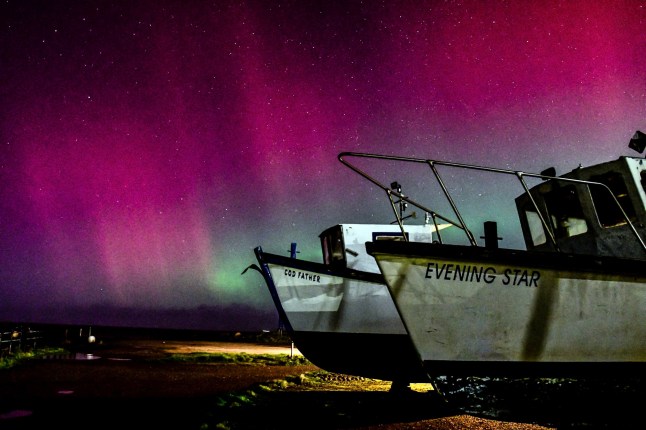 The alerts are issued when geomagnetic activity reaches a certain threshold (Picture: AuroraWatch UKSpace forecasters from the Met Office said solar winds remain ‘very strong and turbulent’ but will begin to ‘wane’ from tomorrow.They added: ‘While aurora sightings are possible for the northern half of the UK at first,these chances fall sharply with time.’So have your camera ready and eyes to the sky tonight if you want to catch the aurora borealis in action.People in England,Wales and Scotland were treated to the neon lights show yesterday.There's a chance of seeing the #aurora tonight,possibly as far south as the Midland and Wales ✨Most likely though,the #northernlights will be visible for Scotland,northern England and Northern Ireland,where clear skies allow 👇 pic.twitter.com/KMbsFa4aAB— Met Office (@metoffice) June 1,2025