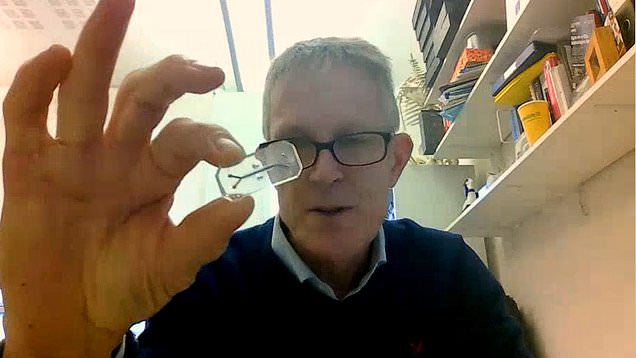 Professor Martin Knight shows an ‘organ on a chip’ he is working on (Picture: Metro)
