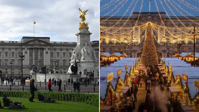 People are flocking to visit the first ever Christmas Market directly outside the front door of the iconic building – but it’s not real (Picture: Getty/Instagram)