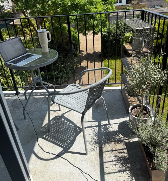 The balcony I’ve wanted for so long provides a great place to WFH (Picture: Supplied)