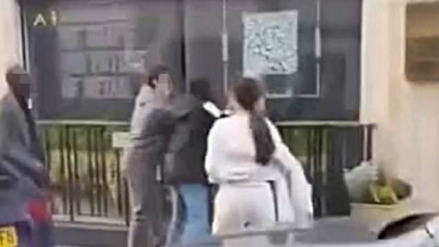 Shouting and swearing can be heard as the victim wrestles with the thief and more join at around 3pm on Sunday,December 14.