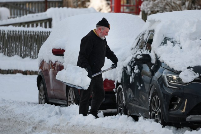 Some places in the UK located on higher ground could expect to see 30-40cm of snow (Picture: EPA)Meanwhile,some of the alerts remain in place until 3pm on Monday.Areas under a yellow alert may experience delays to road,rail and air,and the Met Office has warned to stay safe on icy surfaces to avoid any injuries from slips or falls.Some pavements,roads and cycle lanes may become impassable as a result of snow and ice.Ms Hicks,Met Office chief meteorologist,said: ‘Bitterly cold conditions will persist through the weekend and into next week,with daytime temperatures struggling to rise above freezing for some,and overnight lows dipping to minus double figures in places.’