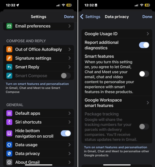 Smart Features can also be turned off via the Gmail mobile app (Picture: Google)