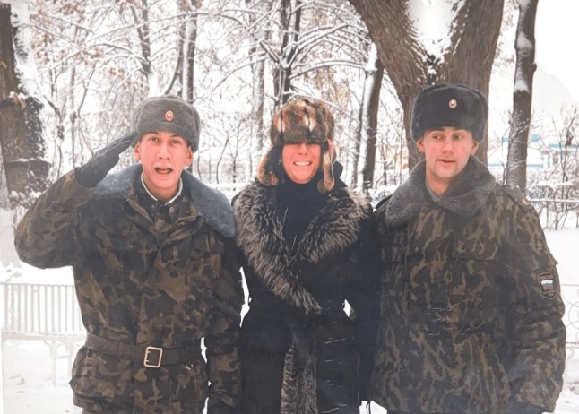 Ghislaine Maxwell was pictured with Russian soldiers in one photo (Picture: DOJ)