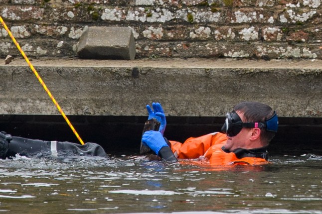 A police search team and forensic investigators search for evidence in the River Thames (Picture: Peter Manning/LNP)