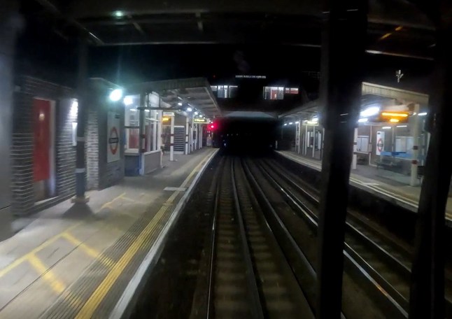 This is what the train driver’s view of the tracks near the platform was like during a reconstruction of the accident at Ickenham Underground Station,with the edge of the platform found to cast a shadow over where the passenger would have been (Picture: TfL/RAIB)