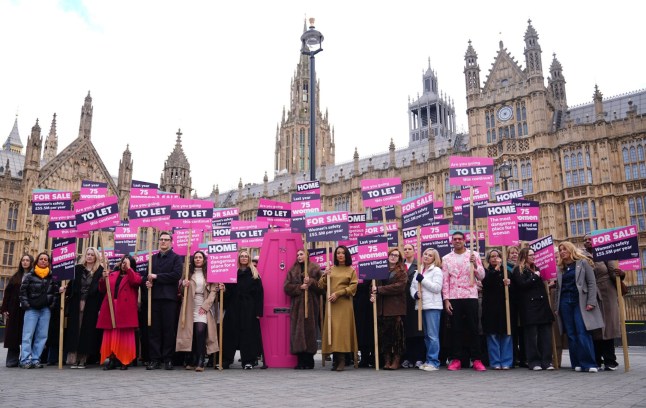 Dozens of people joined Refuge’s demonstration outside Parliament today (Picture: James Manning/PA Wire)