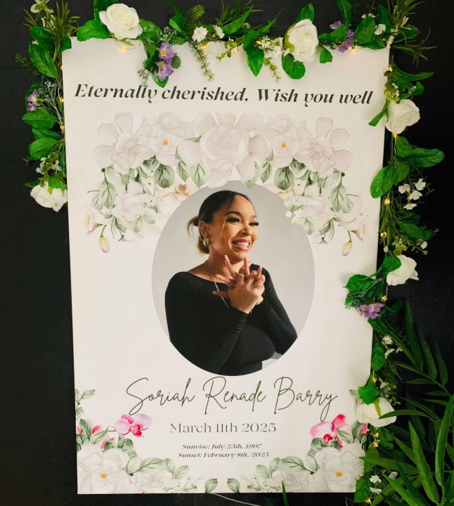 Soriah Barry was 27-years-old when she was killed in a car crash in London (Picture: Supplied by family)