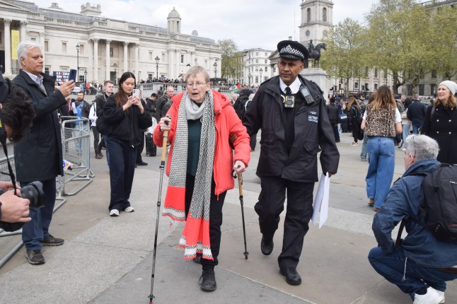 Police officers arrest an elderly protester in Trafalgar Square (Picture: ZUMA Press Wire/Shutterstock)