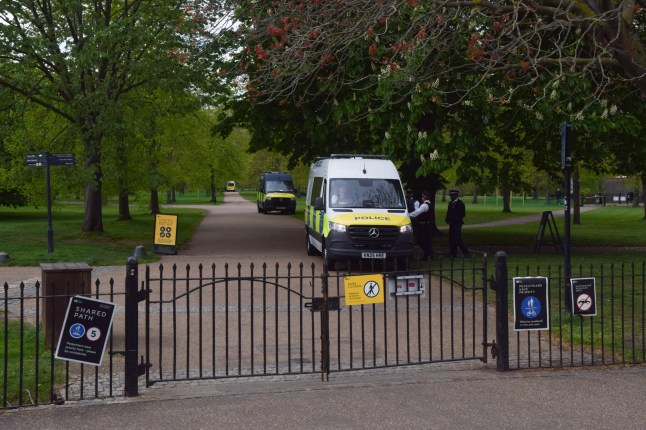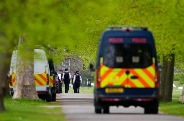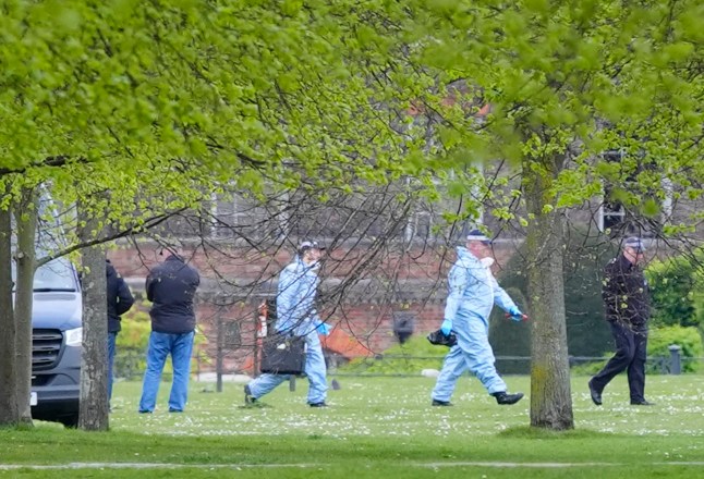 The whole of the park was cordoned off as officers in protective clothing investigated a number of discarded items (Picture: PA)